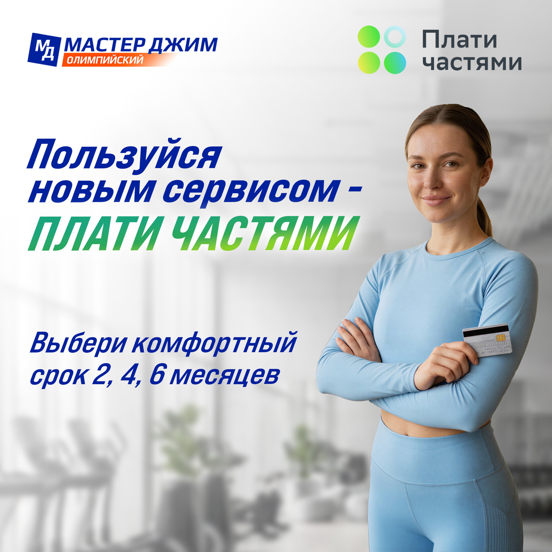 Здоровье и красивое тело не терпят отлагательств. Начните свой путь сегодня, а оплатите потом ЧАСТЯМИ.