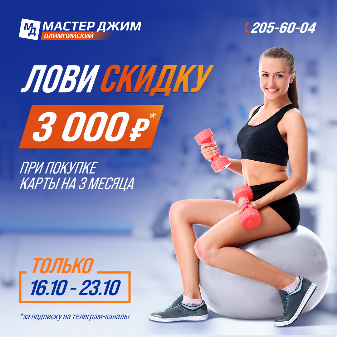 ВЫГОДНЫЙ фитнес в Мастер Джим "Олимпийский" с ПОМЕСЯЧНОЙ ОПЛАТОЙ!