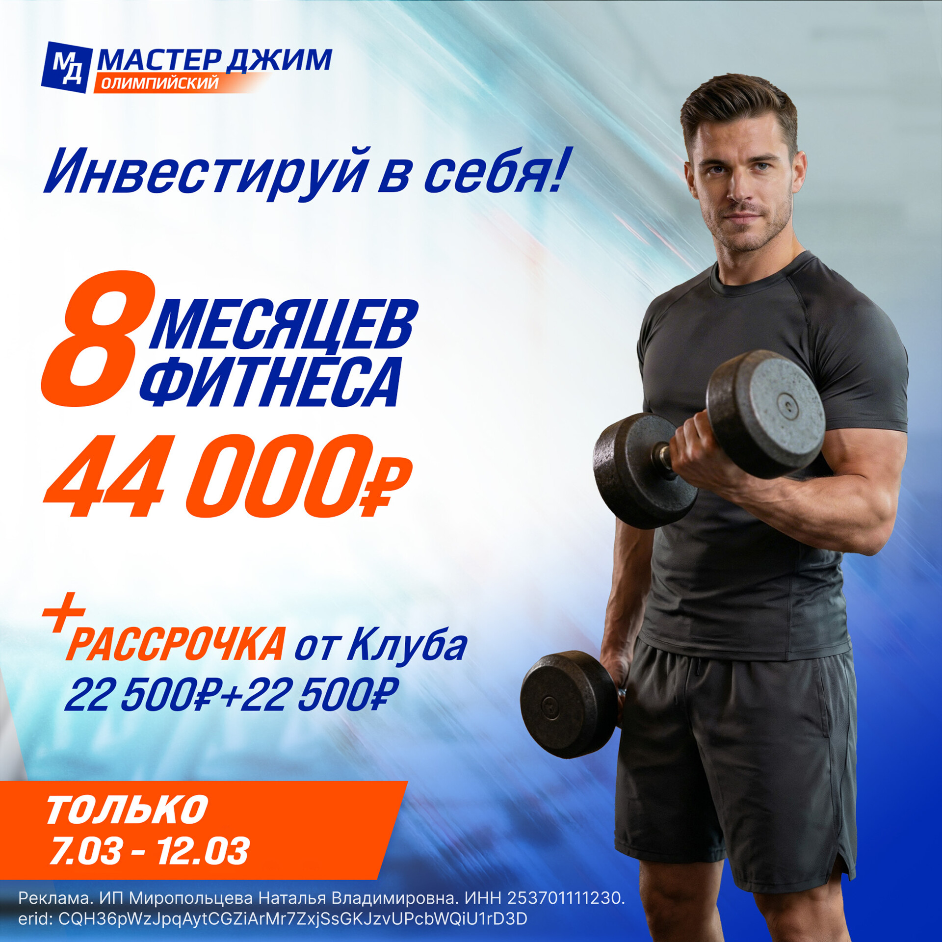 ВЫГОДНЫЙ фитнес в Мастер Джим "Олимпийский" с ПОМЕСЯЧНОЙ ОПЛАТОЙ!